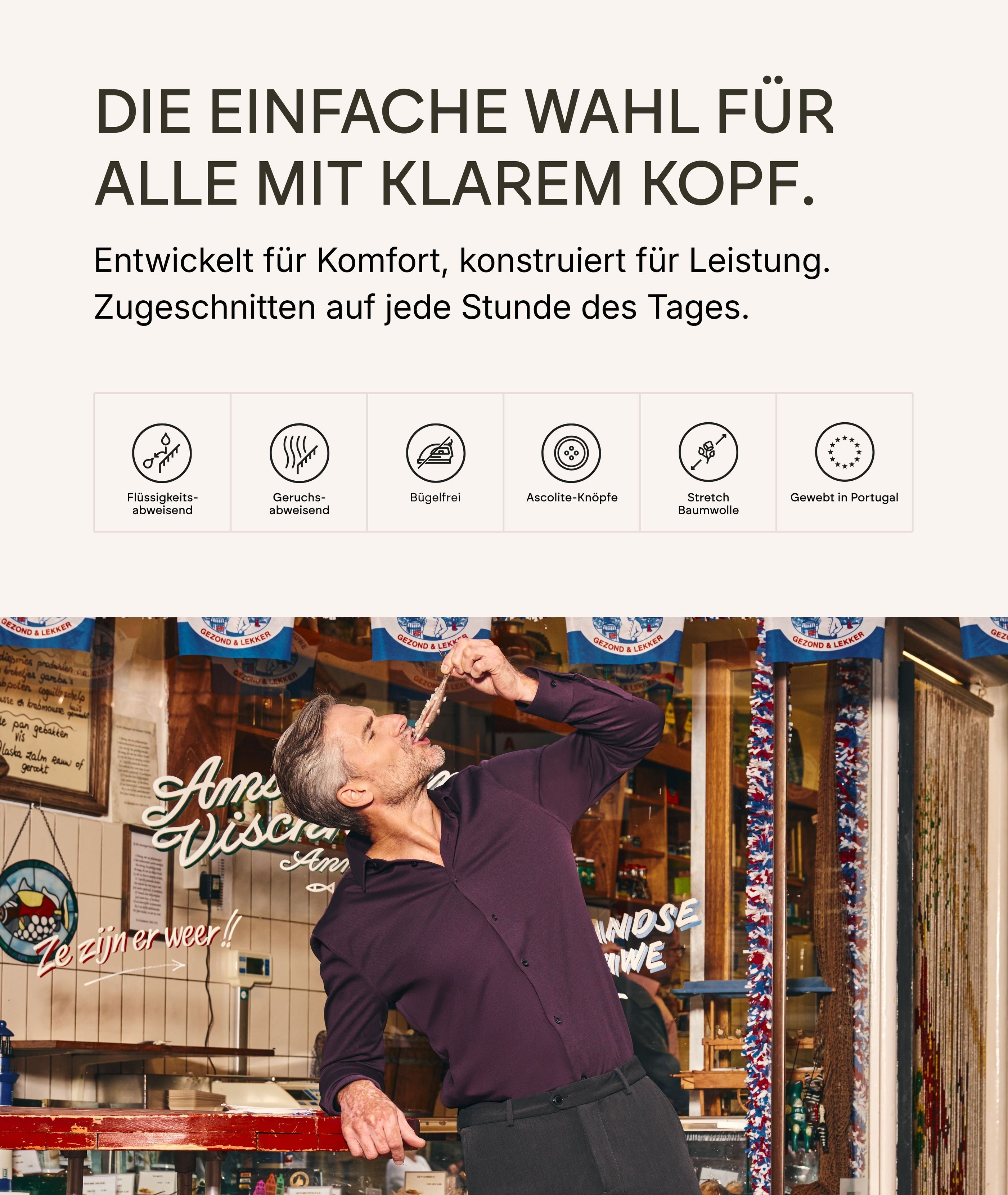Knitted & Casual Shirts sind Easy Care – Bügeln zwischen dem Tragen gehört der Vergangenheit an.